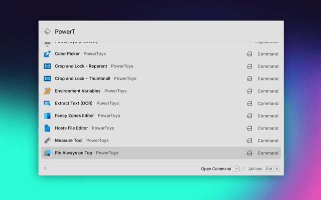 Simply search for any PowerToys tool by name in Raycast and press Enter. The tool will launch immediately, and the Raycast window will hide automatically.