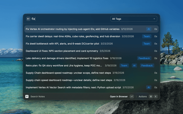 • Tag Filtering: Filter your notes by tags (e.g., #ideas, #meeting).