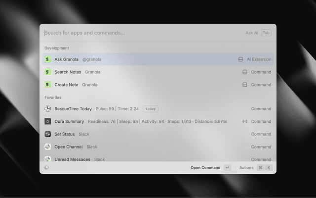 • AI Notes - Use Raycast AI on top of Granola and other AI extensions