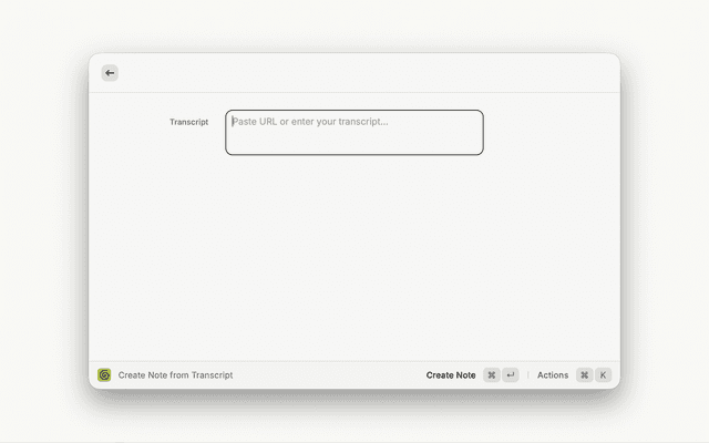 - Create Note from Transcript - Create a new note from text transcripts or YouTube videos with AI-powered summaries