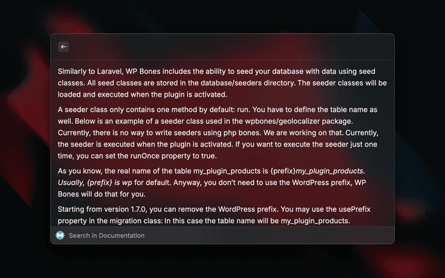 WP Bones is a lightweight framework that offers tools and guidelines to simplify WordPress plugin development. Bones aims to allow you to write plugins in a manner similar to developing a Laravel Framework application.