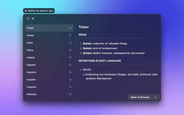 Easily look up words or translate text, support 48+ languages, support Linguee and Youdao dictionary, support OpenAI, DeepL, Google, Bing, Apple, Baidu, Tencent, Volcano, Youdao and Caiyun translation.