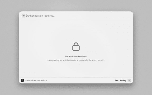 5. Enter the Code: A popup in Anytype Desktop will display a 4-digit code. Input this code in the extension's Code field. Press Command+Enter to confirm.
