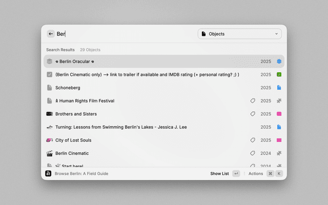 • Interact: Press Enter to view an object in Raycast or Command+Enter to open it in Anytype.