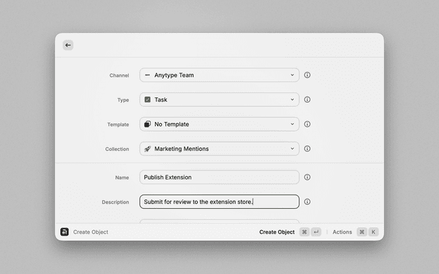 1. Install the Extension: Add the Anytype extension via the Raycast Store.