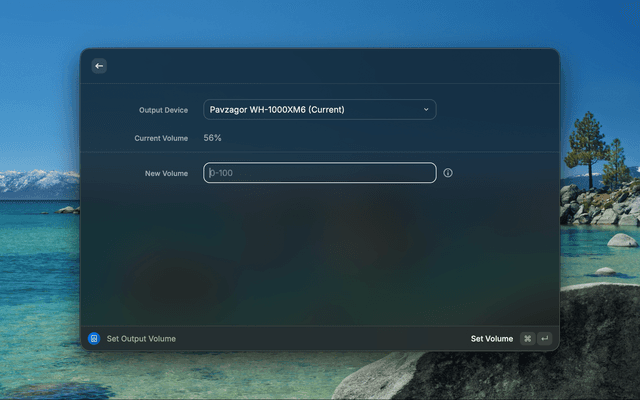Lock a volume level. Press Cmd+Shift+V on any device to pin its volume. If macOS resets it, the extension restores it within 10 seconds. Changes under 2% are ignored so minor system adjustments don't trigger a reset.