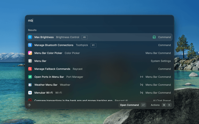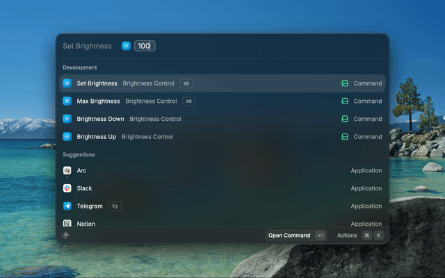 The Set Brightness and Max Brightness commands require Lunar (free for basic brightness control). The extension will automatically install Lunar and its CLI on first use via Homebrew. If auto-install fails, you'll get actionable prompts to open the Lunar website or copy the install command.