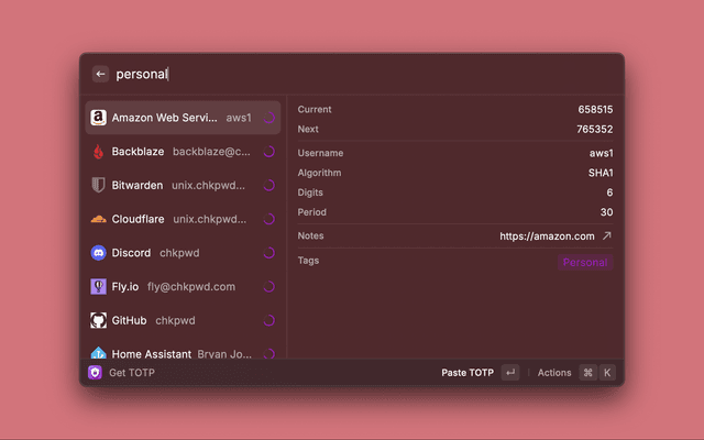 • Sorted Data: Most used TOTP codes will be displayed at the top. Use ⌘ + [Number] to select.