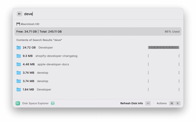 Analyze disk space usage and identify large files and folders in your home directory. This extension helps you quickly find what's taking up space on your Mac.