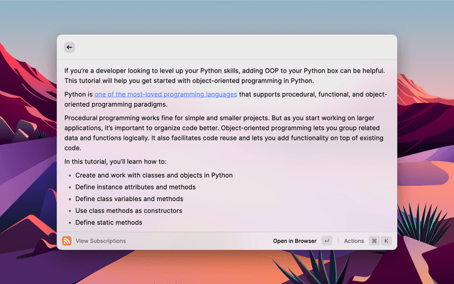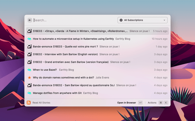 • Add Subscriptions, including prefilling the URL from the active browser tab when the Raycast Browser Extension is available