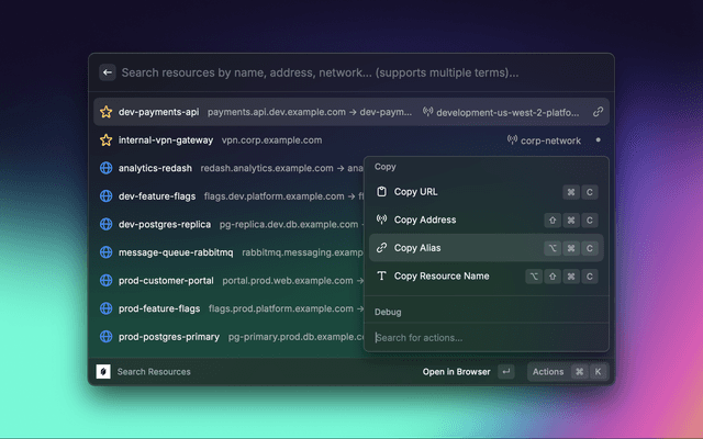 • πŸ“‹ Copy Actions: Copy URLs, addresses, aliases, and resource names