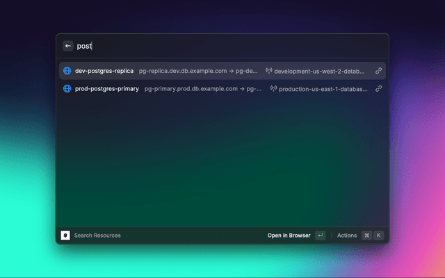 • Launch: Type "Search Resources" in Raycast