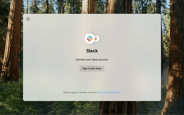 Launch either command; the first run triggers an OAuth browser window. Select the workspace → grant the requested scopes → done.
