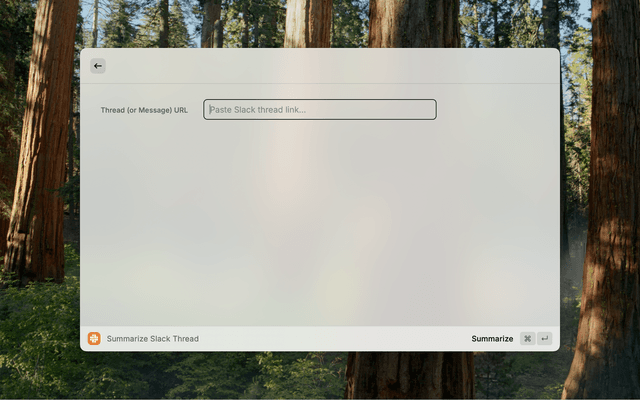 Summarize any Slack channel or thread directly from Raycast using OpenAI. Perfect for catching-up after vacations, keeping stakeholders in the loop, or turning noisy discussions into succinct, bullet-point briefs.