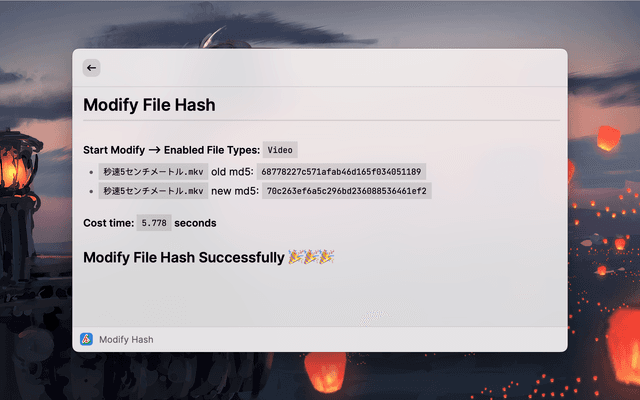 Batch modify the hash of media files, which can be simply used for uploading online disk to prevent censorship. This is a Raycast extension of modify_videos_md5.