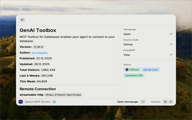 Search and discover MCP (Model Context Protocol) servers from the PulseMCP registry directly in Raycast.