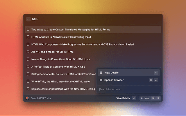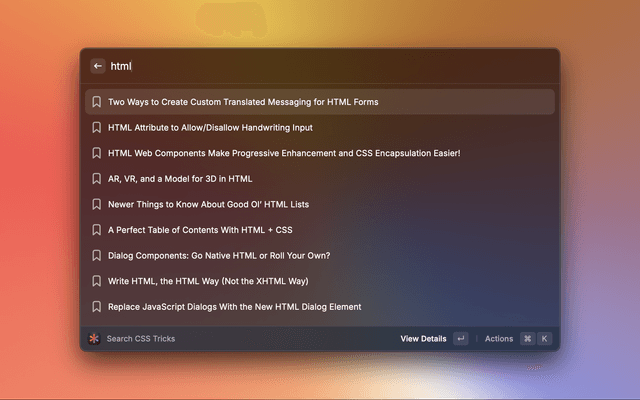 Search articles and pages on the CSS Tricks website.