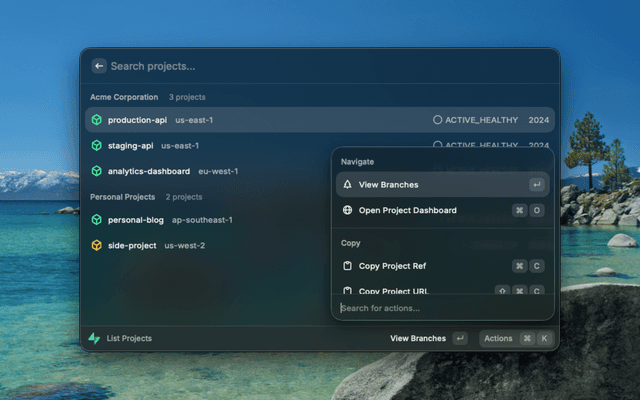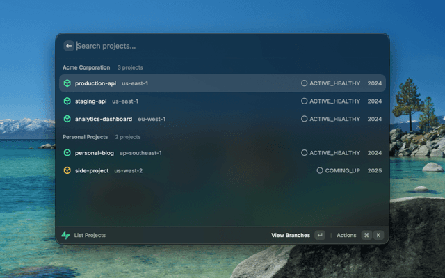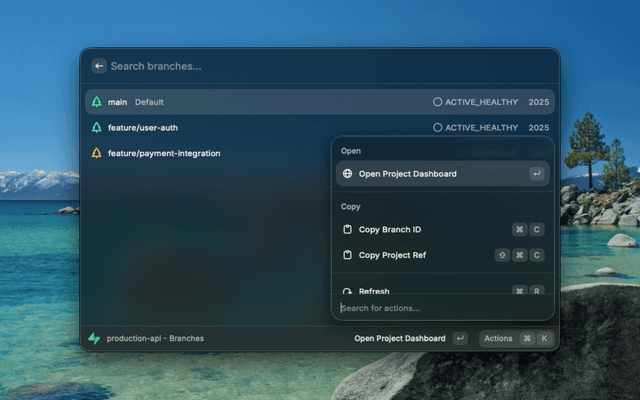 Browse and manage your Supabase projects and database branches directly from Raycast.