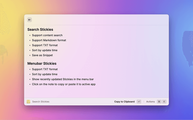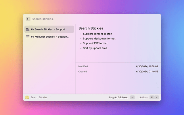 Search and show macOS's built-in Stickies via Raycast.