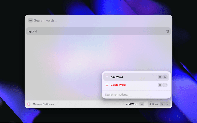 | Manage Dictionary | View, add, and delete custom dictionary words |