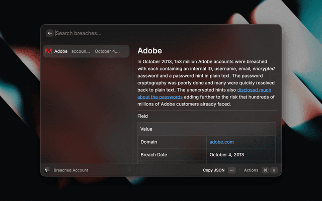 A Raycast extension to check if your email or password has been exposed in a data breach, powered by Have I Been Pwned.