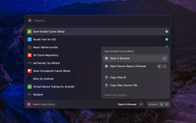 Work with Bitrise builds and workflows, search builds and apps.