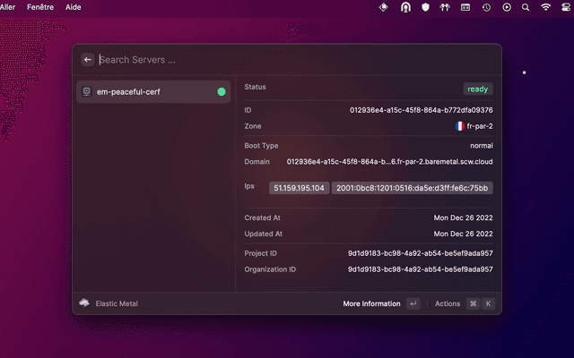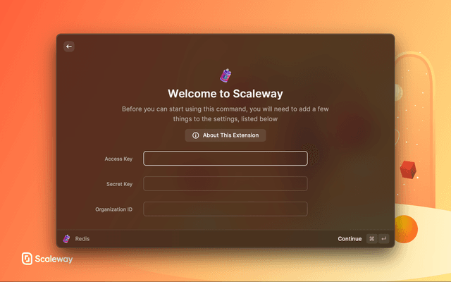• Open a Scaleway command in Raycast and enter your Access Key and Secret Key