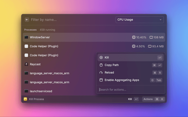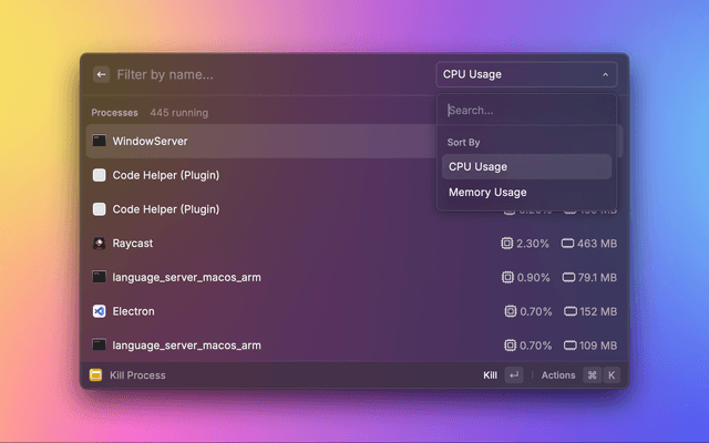 Terminate processes sorted by CPU or memory usage