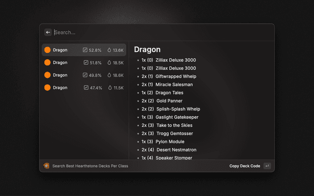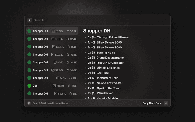 Search the best Hearthstone decks from d0nkey.top and copy their codes to your clipboard.