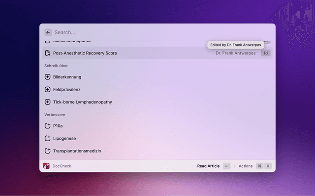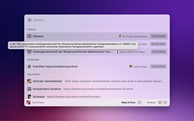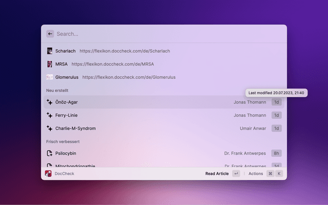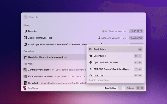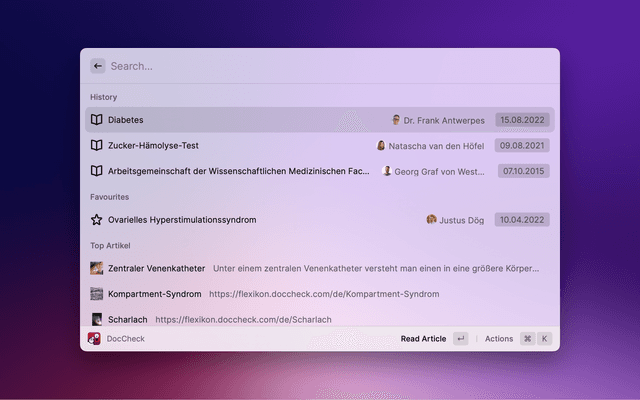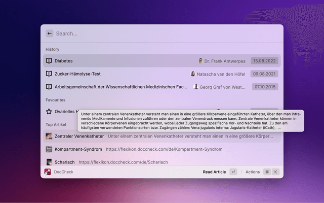 Search DocCheck Flexikon with Raycast