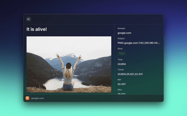 Pings a domain on the terminal.