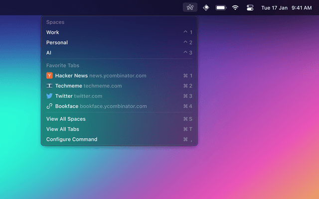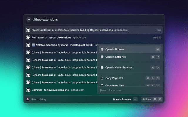 Search and quickly navigate Arc's history and open tabs