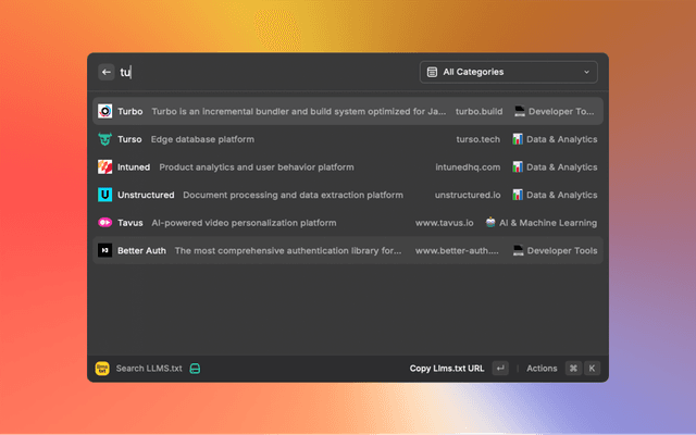 - 🔍 Smart Search: Quickly find websites that implement llms.txt and llms-full.txt proposed standards
