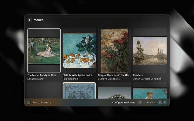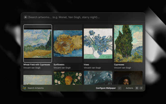 • Search Artworks — Browse and search the Met Museum collection, then generate an ASCII wallpaper from any artwork.