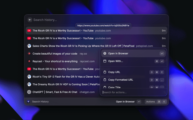 Explore snippets, prompts, and custom themes from within Raycast.