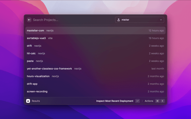 The Vercel REST API docs and Raycast developer docs are good places to start. Feel free to open an issue or ping me on Twitter if you want to help out.