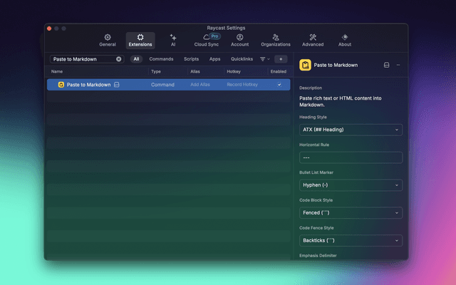 • Customizable Output: Configure Markdown formatting through Raycast preferences