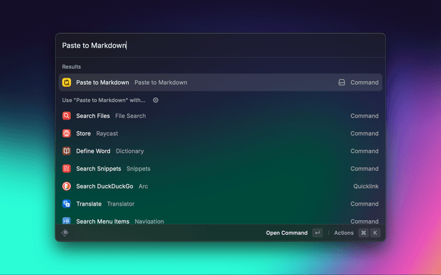 2. Run the "Paste to Markdown" command in Raycast (or use the pmd alias)